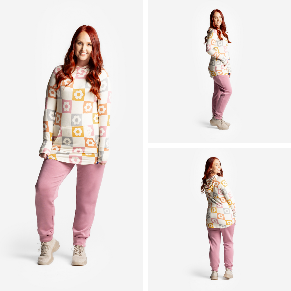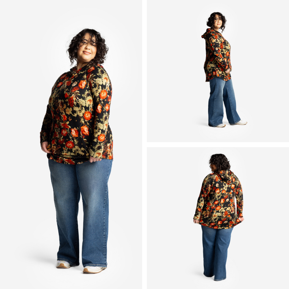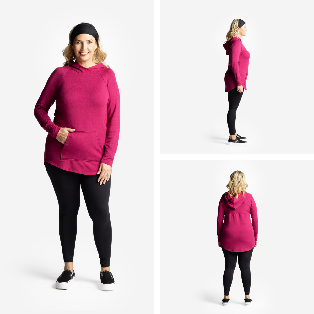 Designed with effortless cool and everyday comfort in mind, Amber features sporty raglan sleeves, a double-lined hood with a chic criss-cross neckline, and a flattering slight high-low hemline for that just-right drape. The cozy kangaroo pocket and self cuffs add to the laid-back, lived-in feel you’ll reach for on repeat.