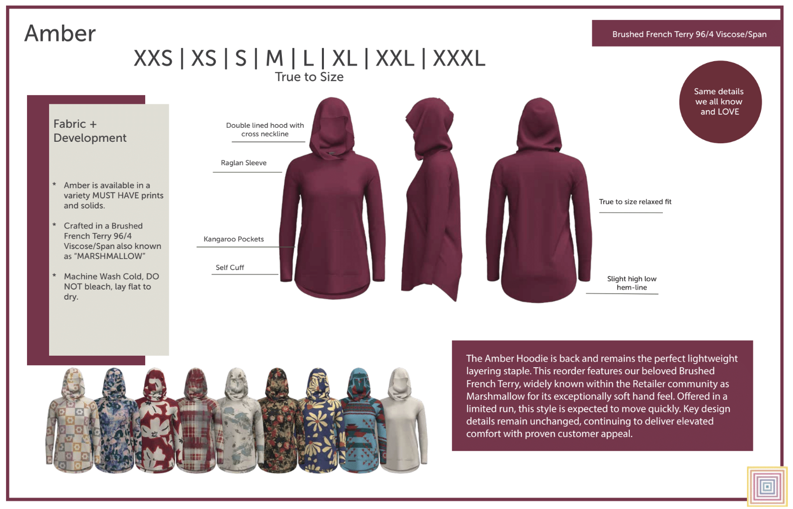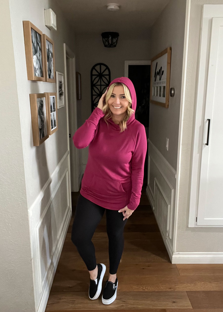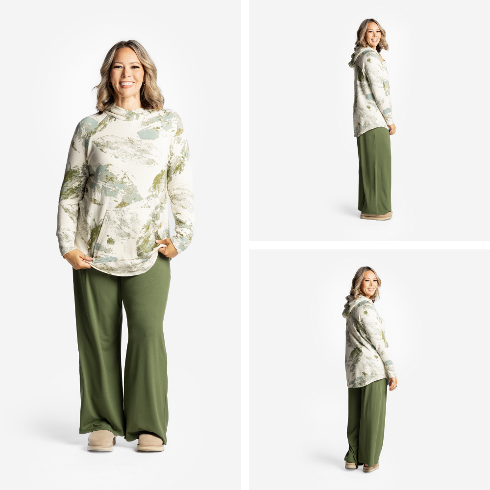 Designed with effortless cool and everyday comfort in mind, Amber features sporty raglan sleeves, a double-lined hood with a chic criss-cross neckline, and a flattering slight high-low hemline for that just-right drape. The cozy kangaroo pocket and self cuffs add to the laid-back, lived-in feel you’ll reach for on repeat.