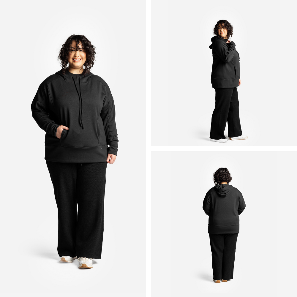 Thoughtful updates include a side-entry hidden kangaroo pocket for a clean, modern finish and stretchy, ultra-comfortable cuffs with thumbholes for added warmth and ease. Perfect for layering or wearing on its own, the Regan 2.0 is your go-to hoodie for laid-back days and elevated casual style.